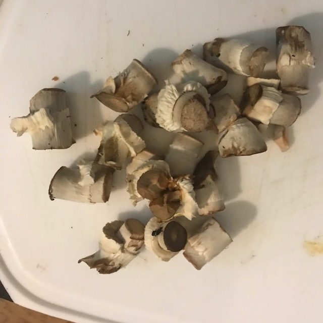 - The first step is to clean the mushrooms. DO NOT use water on the Mushrooms. I’d recommend using a lightly damp paper towel and wiping the Mushrooms down.