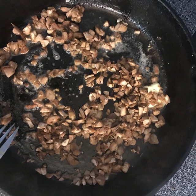- Chop up the stems and sauté them over medium heat with the butter in a skillet pan. Once cooked turn off the heat and set aside.