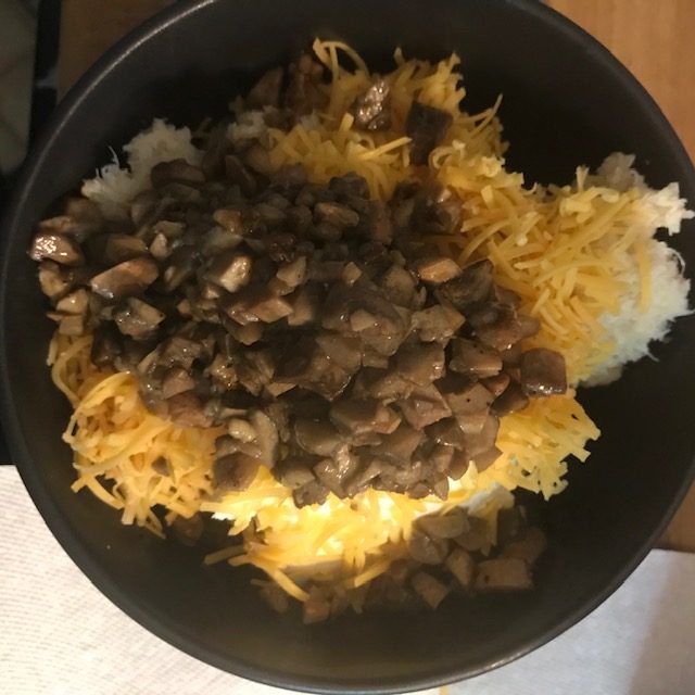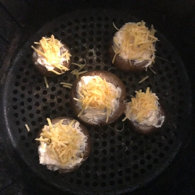 - Add the Mushrooms to the air fryer and sprinkle them with some of the shredded cheese.