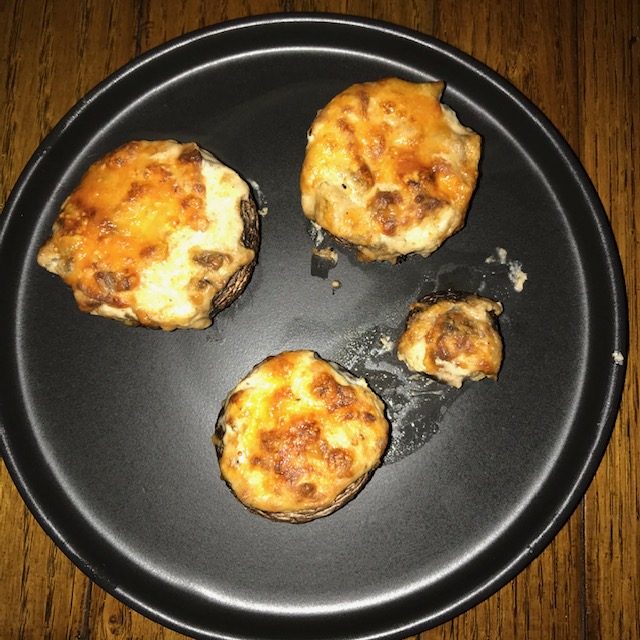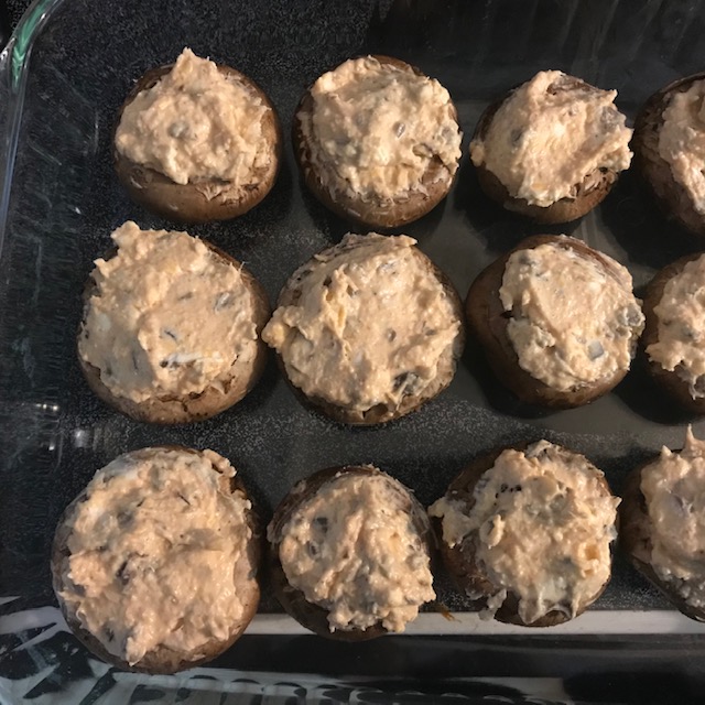 - Now take a spoon and fill each of the mushrooms.