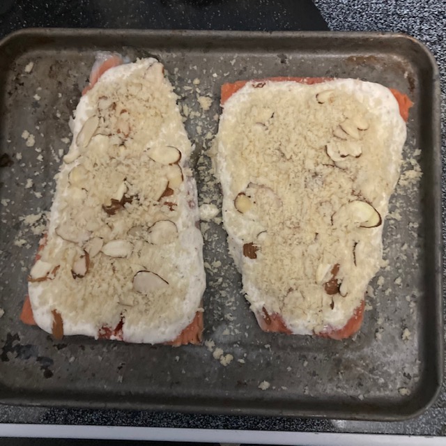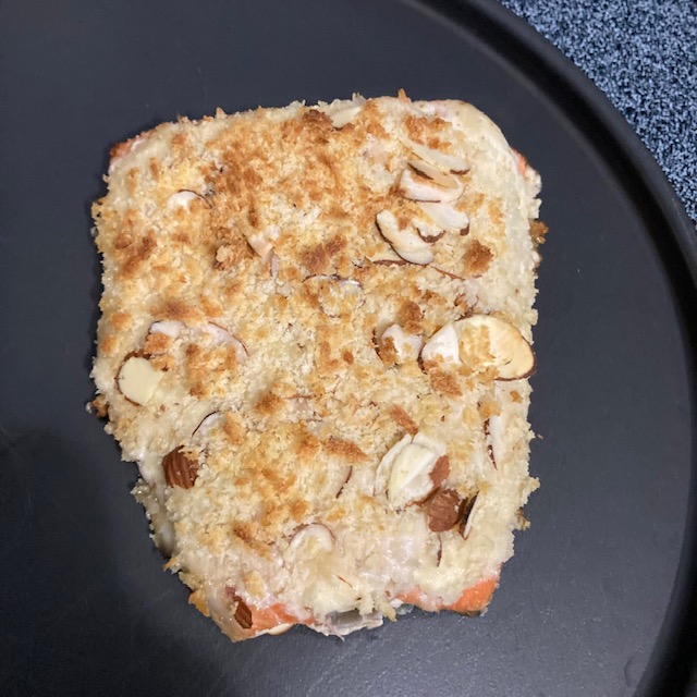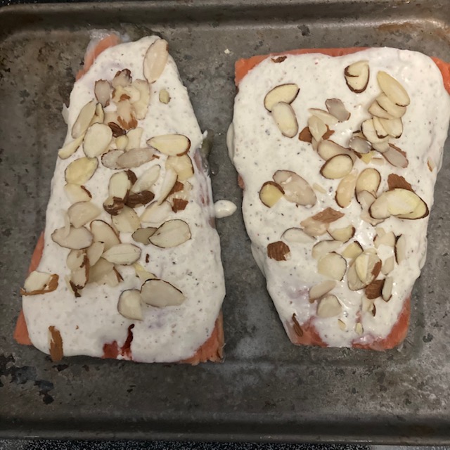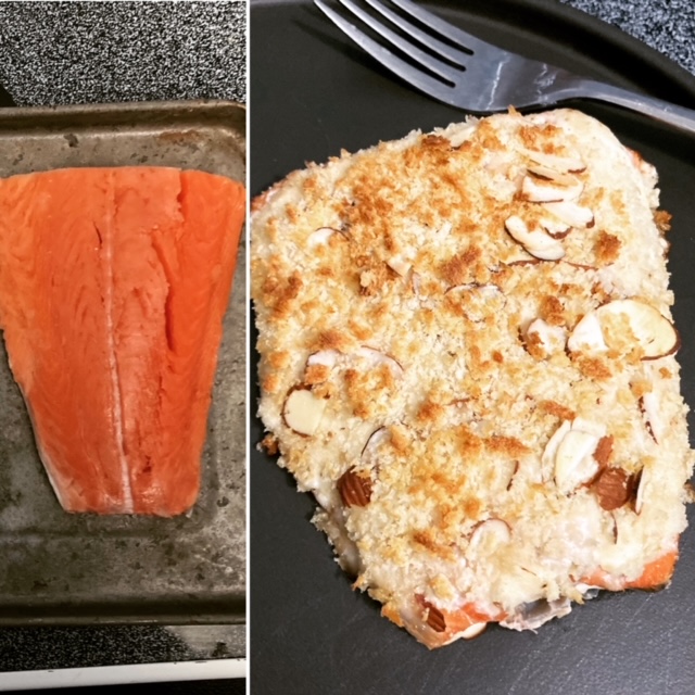 Almond Horseradish Salmon is a great recipe that is perfect for the Lenten season or even great for someone looking to add fish to their diet. This meal is also very quick to make and super simple. From start to finish Almond Horseradish Salmon takes about 20 minutes. The longest part is preheating the oven. I like to make this meal on a weeknight and pair it with a vegetable. Almond Horseradish Salmon is a great way to eat Salmon. This fish is one of my favorites and if you need reasons to eat more salmon click this link and read about the health benefits. Give this one a go I know you will enjoy it!