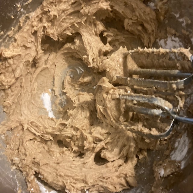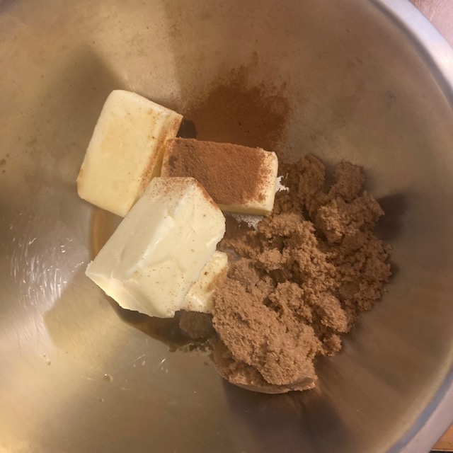 - Cream together the brown sugar and butter and then add in the remaining frosting ingredients. Use a hand mixer to get them all combined.