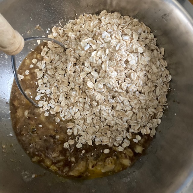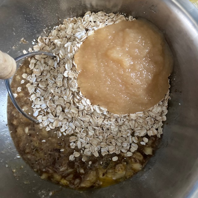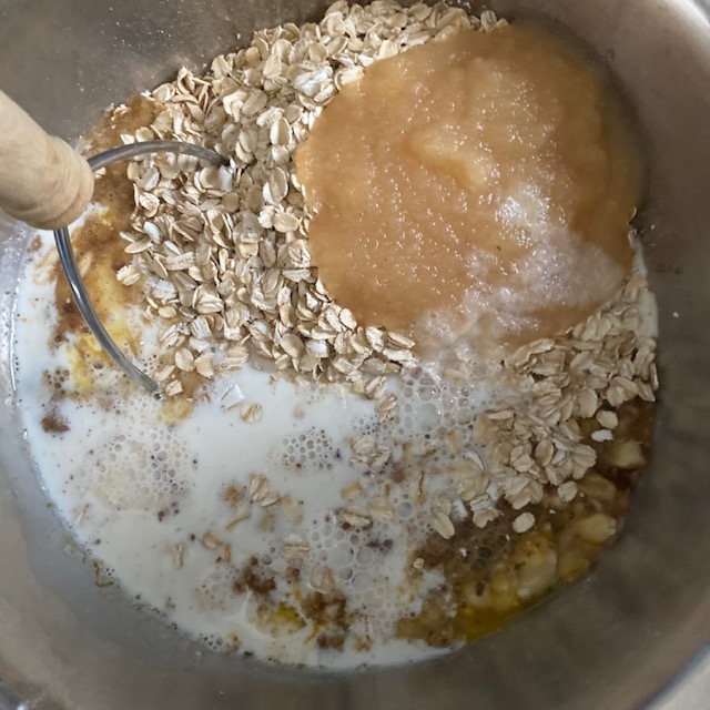 - Now add in the Oats, apple sauce, and milk.