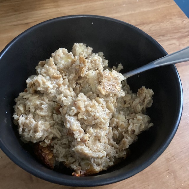 Apple Oatmeal Bake is an alternative to your usually Oatmeal that is easy to make and you can reheat. Now with this one, you can make it in advance and eat it as your week progresses. It’s also kinda good cold! Apple Oatmeal Bake has some great flavor and is not too heavy. Sometimes when you have Oatmeal it feels like it sits in your stomach for a while after. This one is a little more like Cream of Wheat. If you have never had Cream of Wheat I’d say go ahead and give it a try it was a favorite as a youngster and they have flavors of it now! What!?!