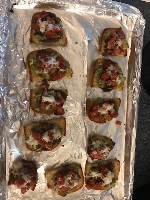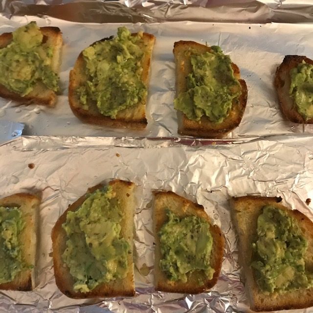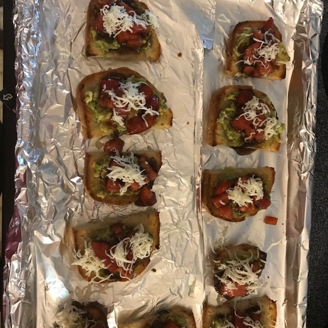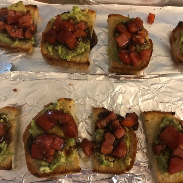 - Place the baking sheet with the Avocado Bruschetta back into the oven on broil for another 5 to 8 minutes.
