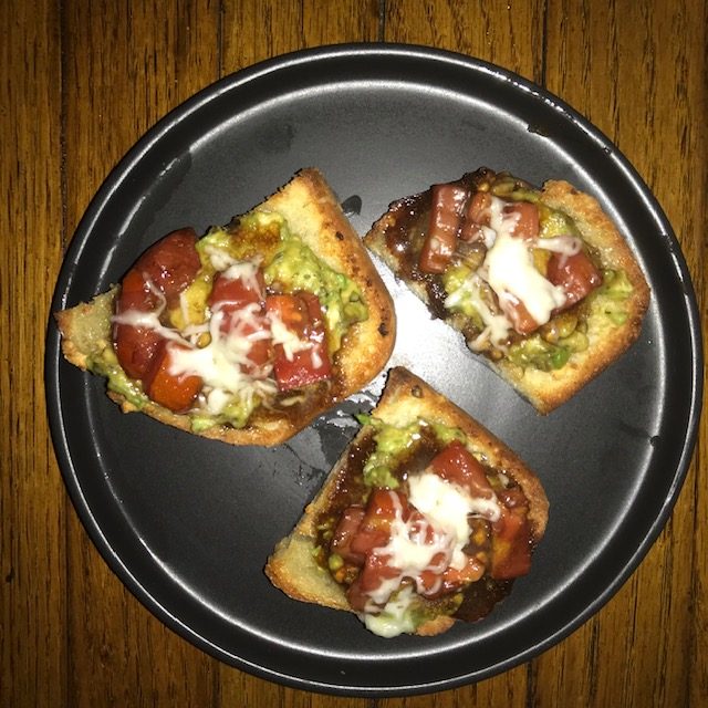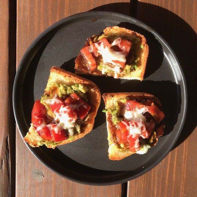 Avocado bruschetta is a recipe I developed because I grew a TON of tomatoes in my garden this year and I needed to eat them ALL! Now I’ve been making Lazy Man’s Bread on the regular, so I utilized it for this Bruschetta. I baked the bread in the morning and then put this Avocado Bruschetta together that evening. However, feel free to use any type of bread you prefer. Fancy people I’m sure will use Baguette French bread or a similar Italian Bread. I really enjoyed this recipe and hope you do as well. I believe I really made some good flavor combinations here that will make you and anyone you serve it to smile.