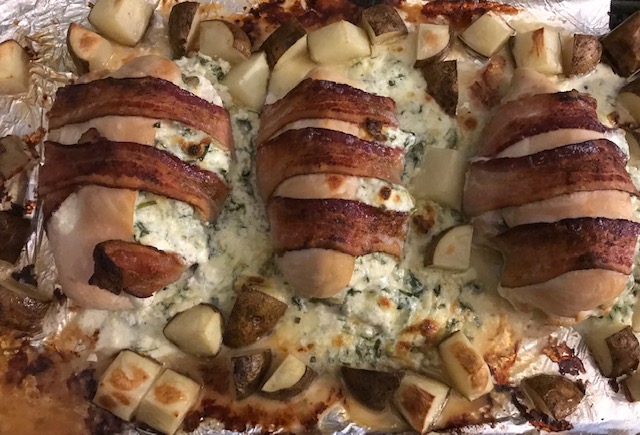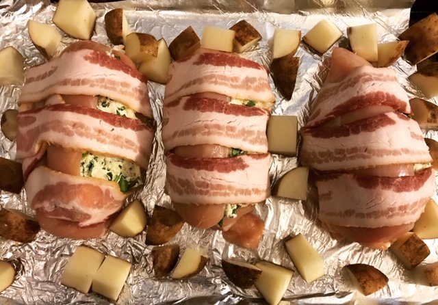 Stuffed Chicken Breast is a great recipe that is fun and simple to create. Don’t need much for this one. I did this one with minimal equipment and it really had some great flavor. What did I stuff the Chicken with you may be asking yourself? Well, I used cream cheese, spinach, & some Swiss cheese. I also wrapped the Chicken in bacon because why not?