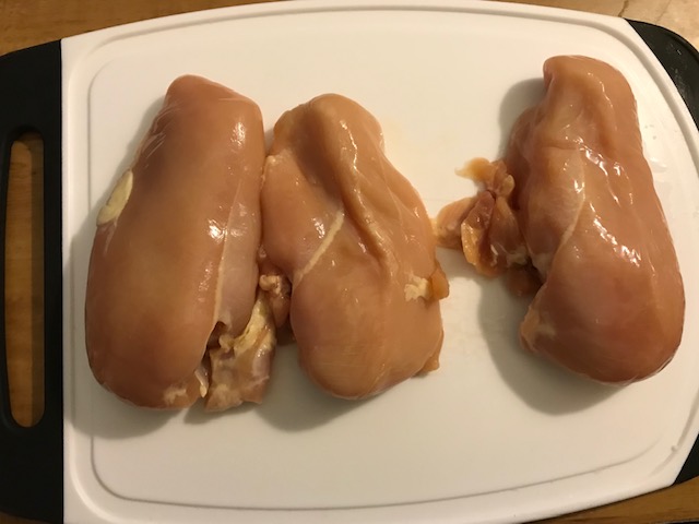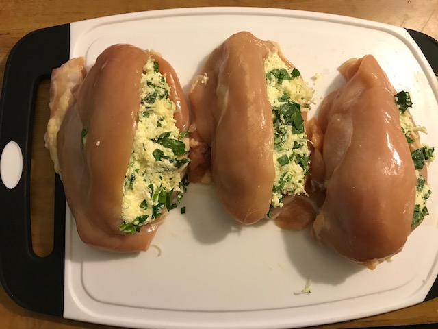 - Cut each chicken breast about ¾ of the way, so that you can open it almost like a book.