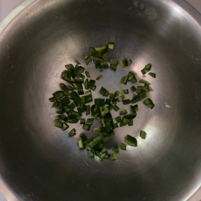 - Dice the Jalapenos into small cubes and add to a large bowl.