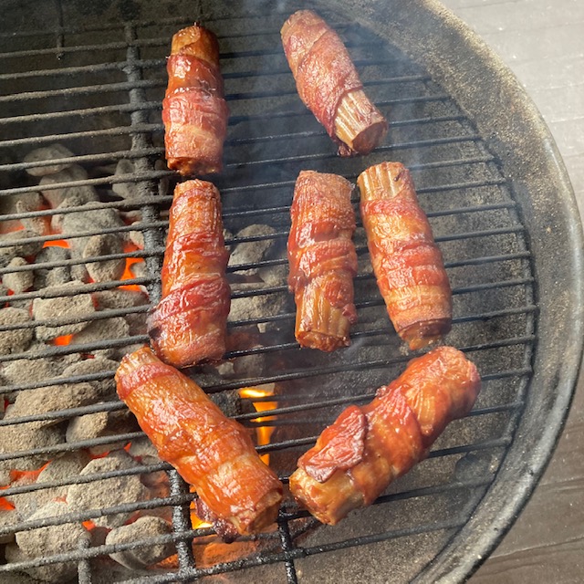 BBQ Sausage Shot Gun Shells are a fun Summer BBQ Appetizer that can be prepared in advance. These are great and the bacon cooks the Shells and makes them soft. The BBQ flavor is excellent with the Sausage & Bacon. They are easy to make over indirect heat leaving the direct heat for other items like Burgers, Steaks, BBQ Chicken, and many other summer BBQ favorites. Try this with different BBQ Sauces or different types of Sausage. BBQ Sausage Shot Gun Shells are amazing you should give them a go!