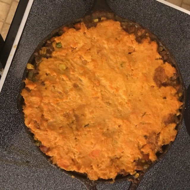 - Mash the three together to create the Sweet Potato Mash Topping. Set aside for later.