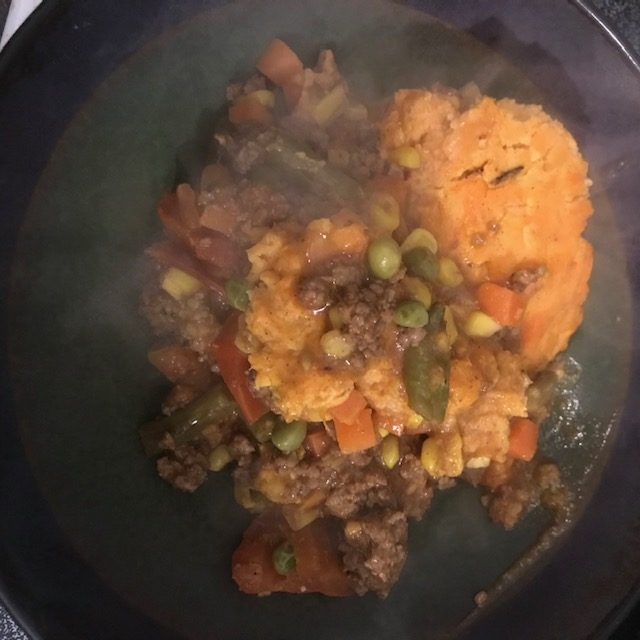 BBQ Sweet Potato Skillet Pie is a healthier recipe that is great for Sunday meal prep or just a great meal to fill you up! This is one of my personal favorites and I’m happy I get to share it with all of you! Ground Beef or Turkey works well as the base. While the Veggies & Black Beans help to add substance. BBQ Sweet Potato Skillet Pie also uses Sweet Potato mash to really help fill you up. I utilize a no sugar BBQ sauce called G Hughes Smokehouse BBQ Sauce. It comes in three flavors and I like them all. Any of the three will work for this recipe, but I like the Hickory flavor for this one. BBQ Sweet Potato Skillet Pie also reheats well, so it can be used for a work lunch. Give this one a try it!