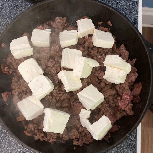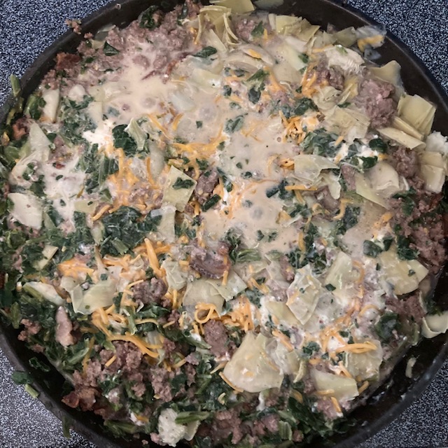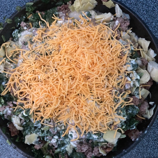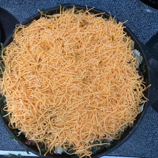 - Mix all of these items with a small amount of the shredded cheddar for 4-8 minutes in the skillet.