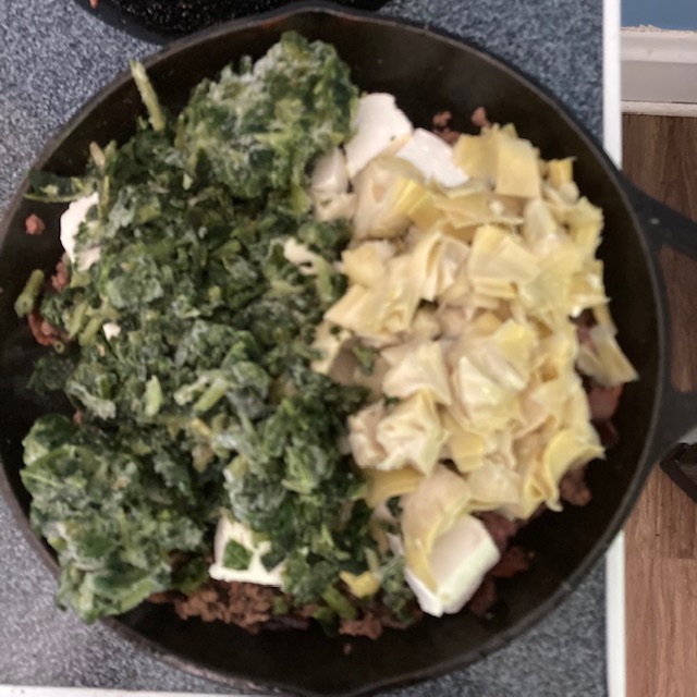 - Chop up the Artichoke Heart and Cube the Cream Cheese. Also prep your frozen spinach.