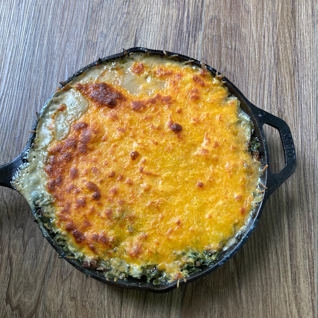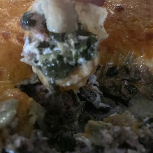 Beefy Bacon Spinach Dip is a different take on your regular spinach dip. This one is BEEFY and has BACON! If you need a filling dip with some fun spinach dip flavor, give this one a go. Nothing crazy with Beefy Bacon Spinach Dip it’s just a good deep that works well with pretty much any type of chip, but my recommendation would be a Frito Scoop chip or a toasted bread style chip. Make Beefy Bacon Spinach Dip next time you have buddies over!