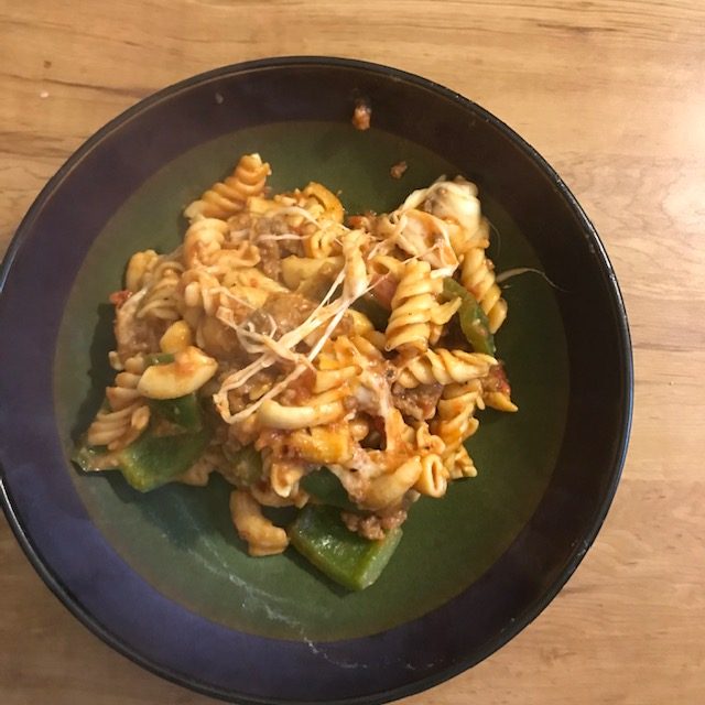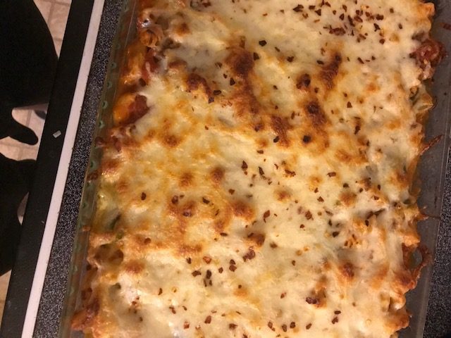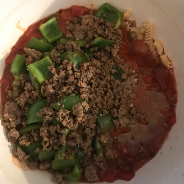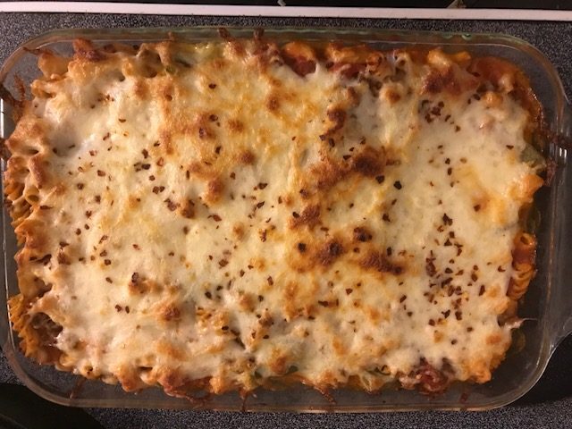 Now if you don’t like Chickpea pasta you can substitute whole wheat pasta or that protein plus pasta that is out there. I’ve always liked the Barilla pasta but to each their own. The Chickpea pasta I use is the Banza. All of these kinds of pasta work well and I’ve used myself. Another substitute is Ground Turkey if you don’t want the Beef. Now the marinara I used was a homemade version my family makes each year, but store-bought will work just fine!