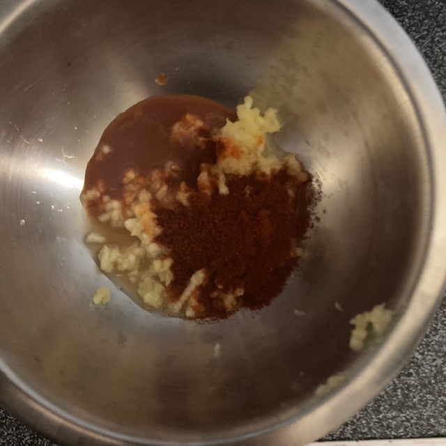 - In a small bowl put in the Garlic, Sriracha Sauce, Lime Juice, and Smoked Paprika.