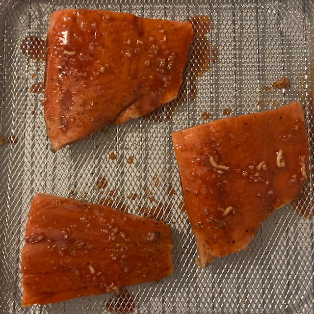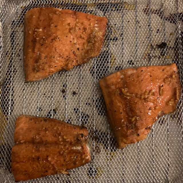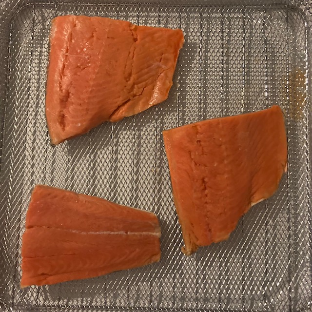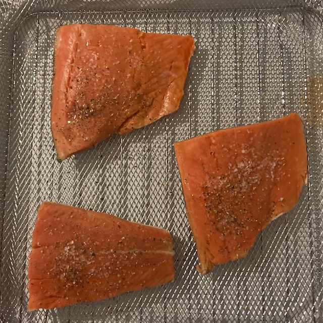 - Air Fry the Salmon for 7 minutes at 380 degrees Fahrenheit.