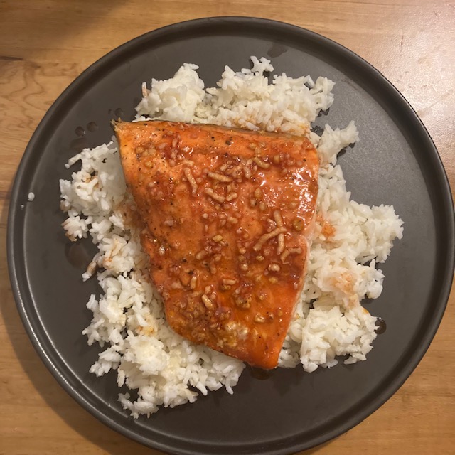 - Remove the Salmon and plate. Spoon additional glaze to your taste. (I served this over white rice)