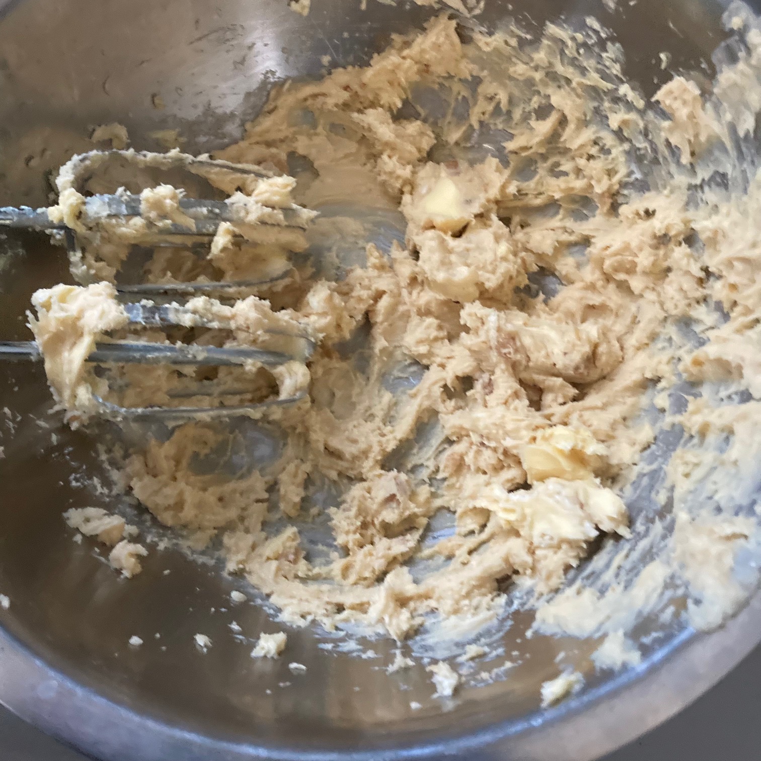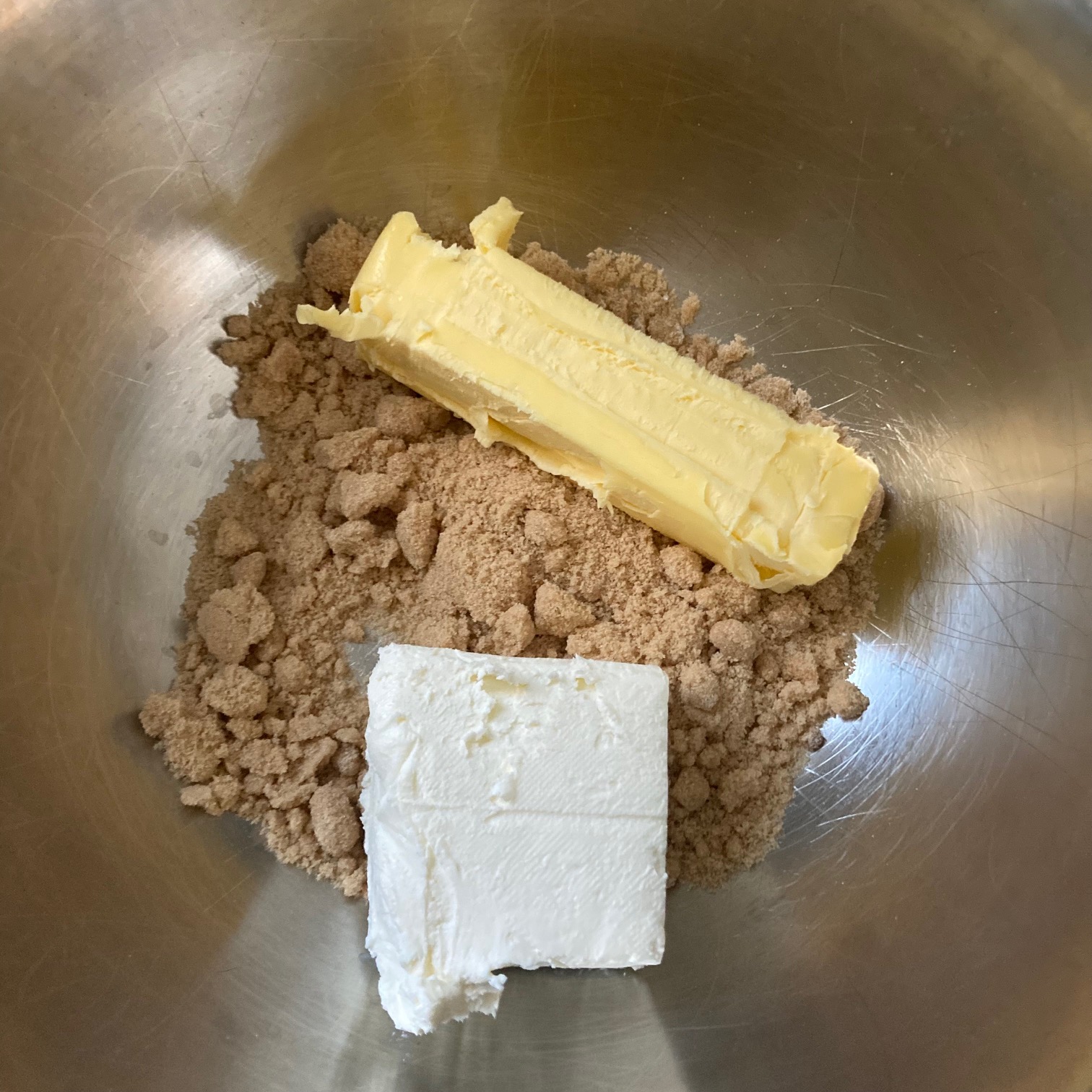 - In a large mixing bowl, mix in the Muffin Mix, Cream Cheese, Butter, Brown Sugar, & Eggs.