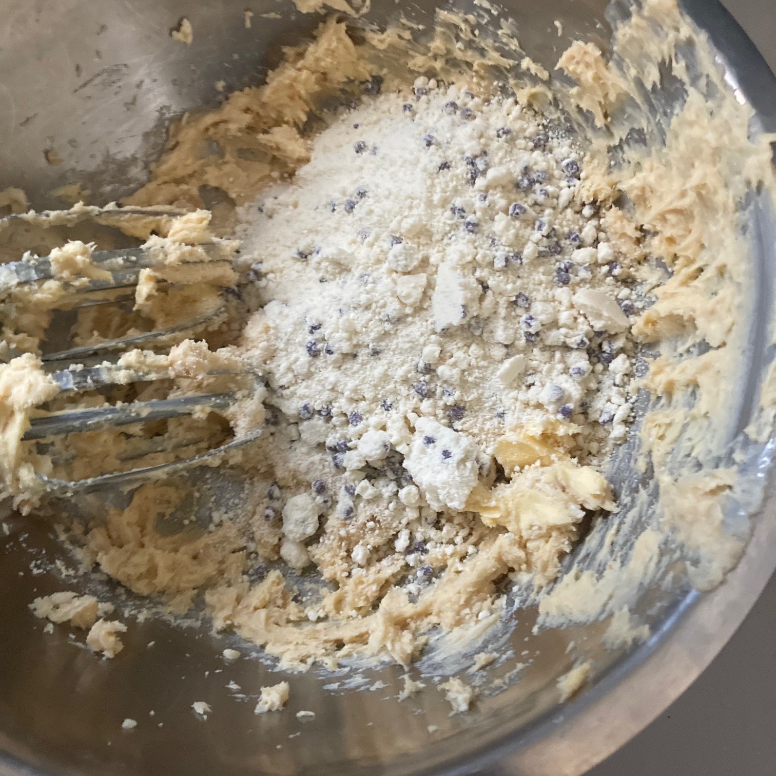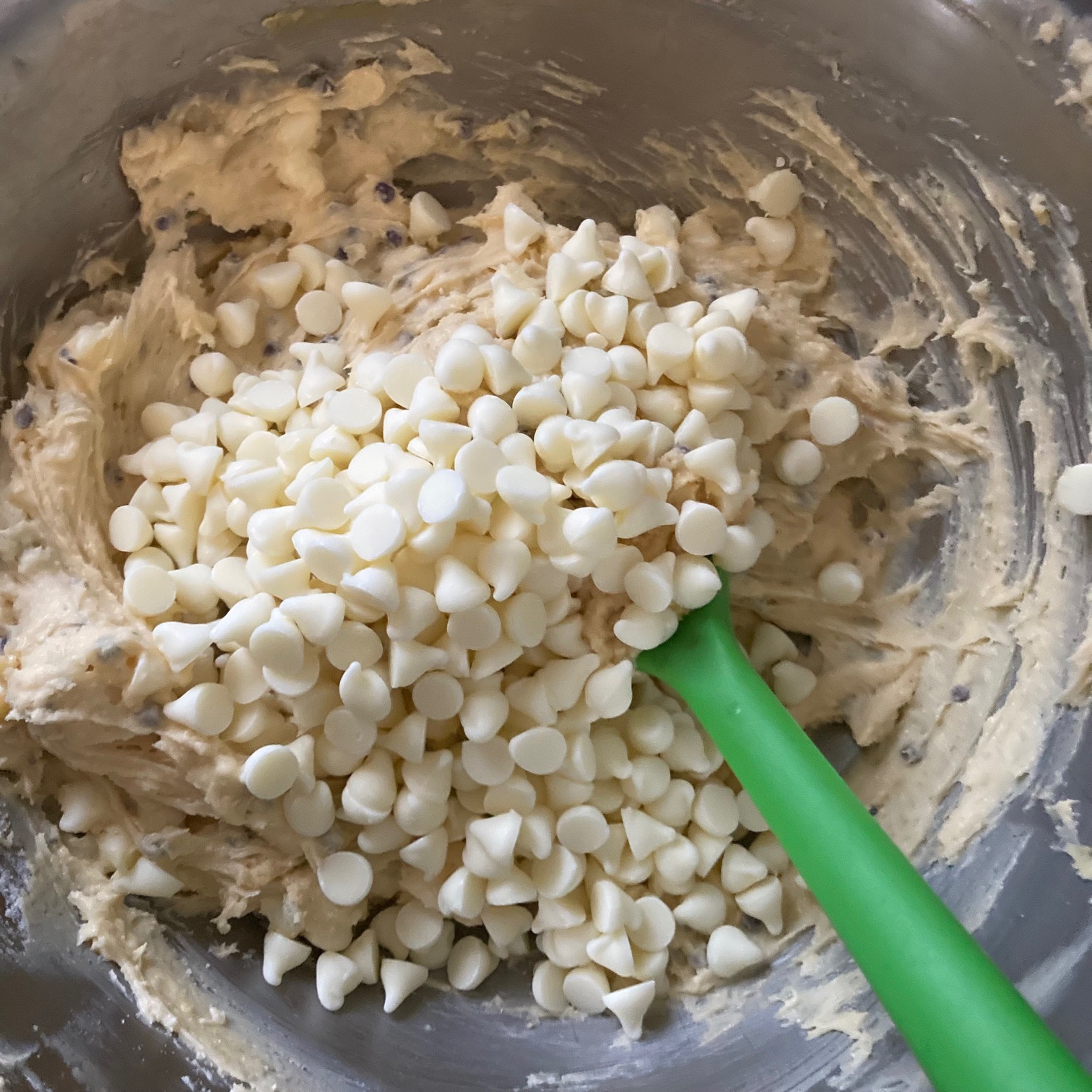 - Mix these until smooth and then fold in the White Chocolate Chips.