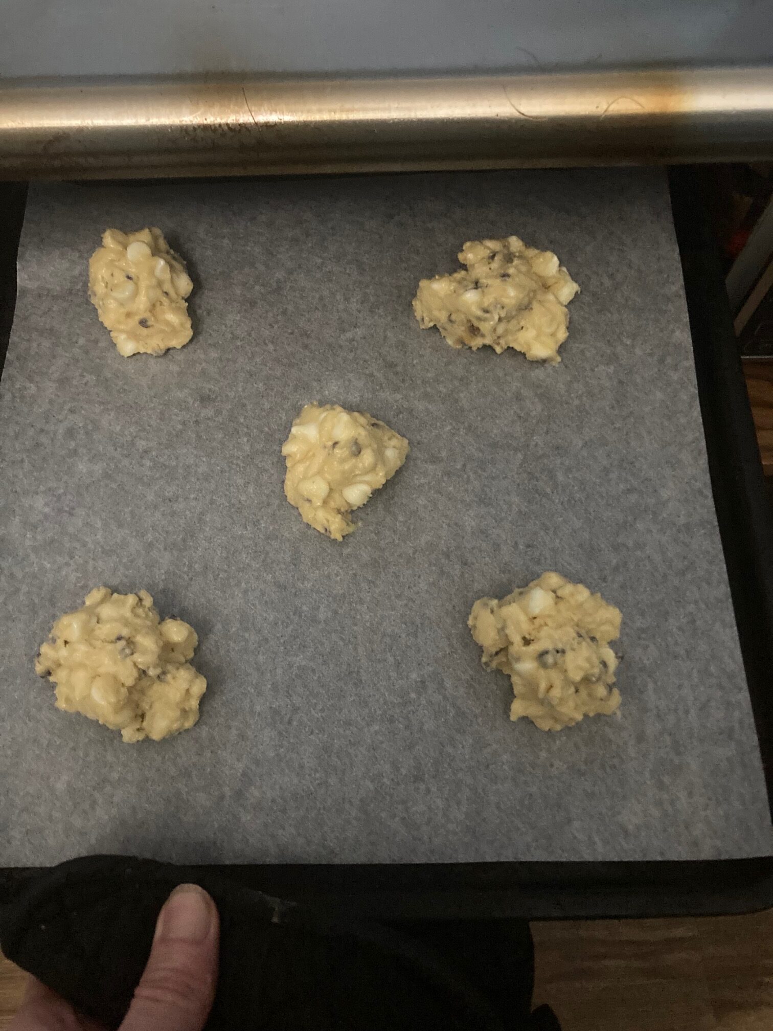 - Place teaspoon-sized dough drops on the sheet at least 2 inches apart from one another.
