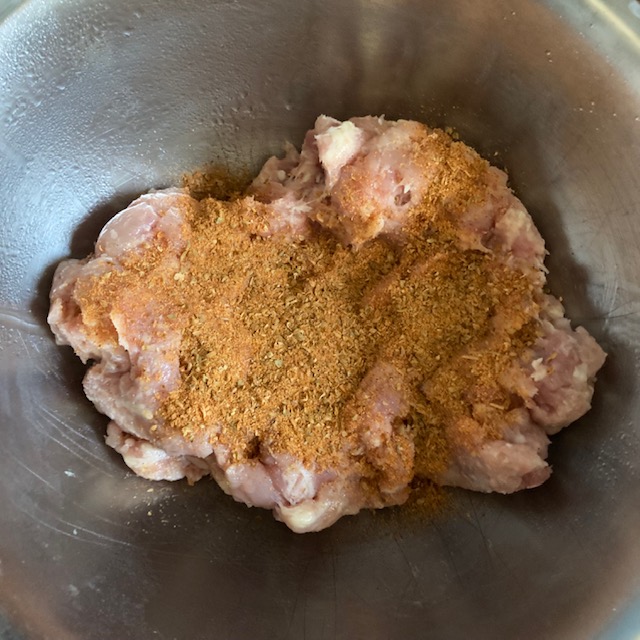 - Take the Ground Chicken and season it with the seasoning.