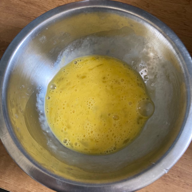 - While the nuggets are in the freezer crack the egg into a small bowl and beat it.