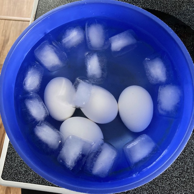 - Let them stay in the boiling water for 10 minutes then remove and add them to an ice bowl for another 10 minutes.