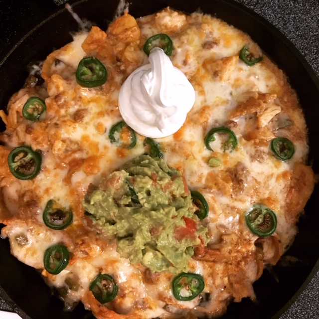 - Remove from oven and add on some sour cream, guacamole, and if you have it some salsa! (I didn’t have salsa this night)