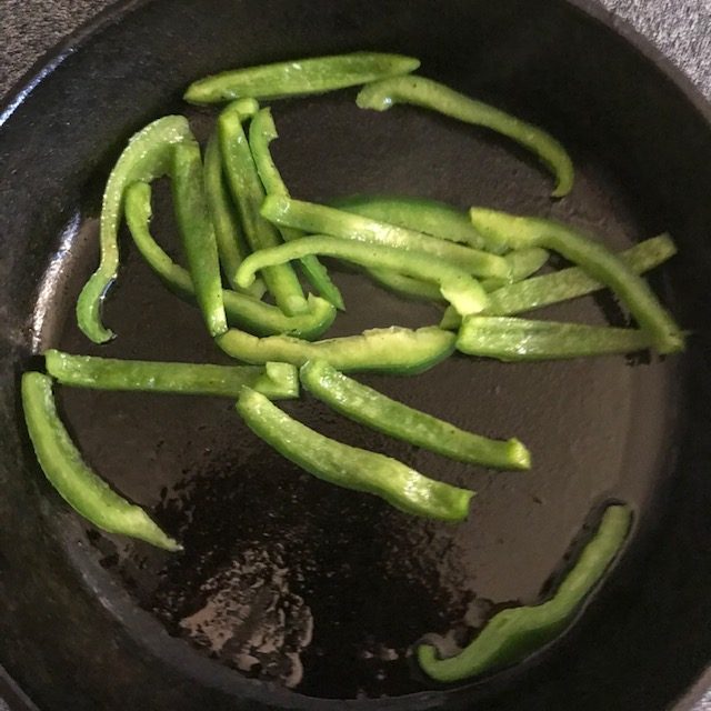 - Heat up your skillet to medium heat and add in your bell peppers with some juice from the lime.