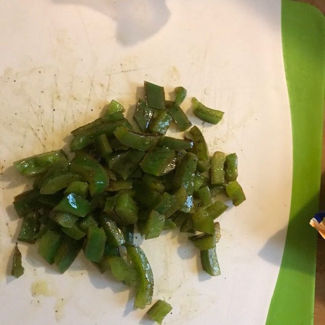 - Once cooked set aside the peppers and dice them up into smaller bit size pieces.