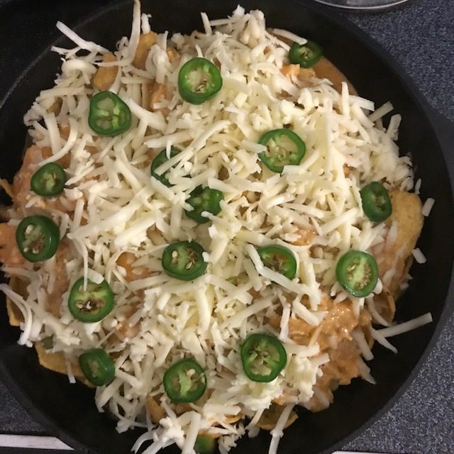 - Cover the Chili Cheese layer with additional shredded cheese and the Jalapenos.