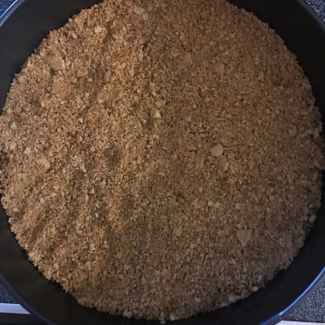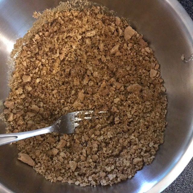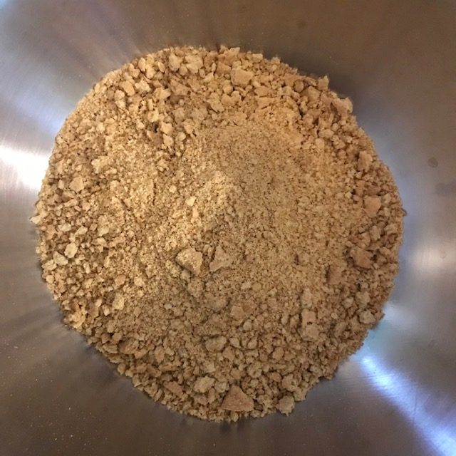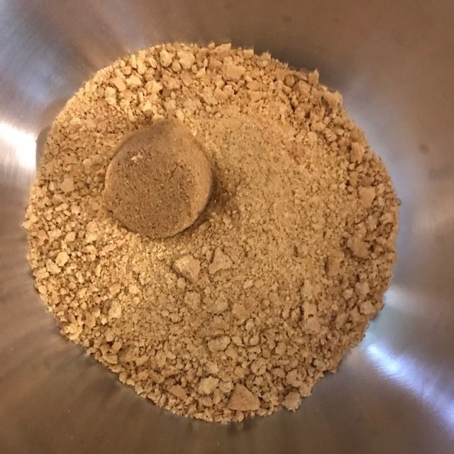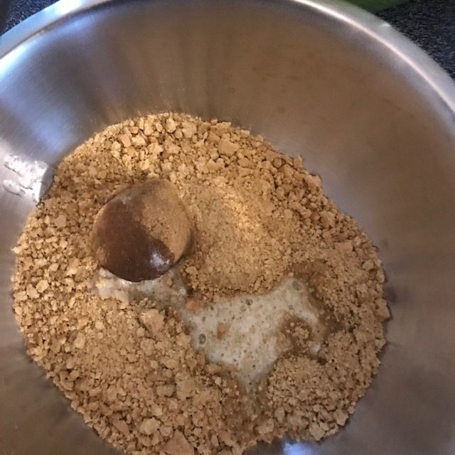- Start with the crust. Crush up 1 ½ Cups of Graham Crackers and put into a bowl.