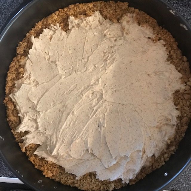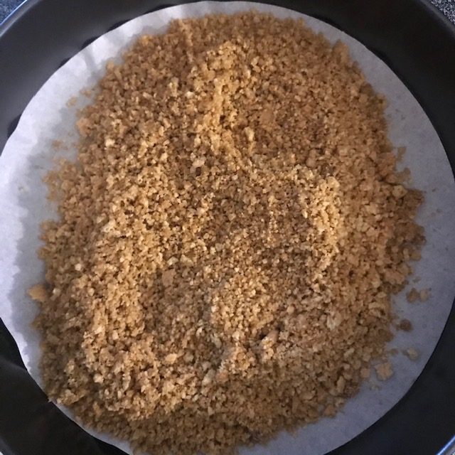 - Spread this out evenly in a spring-loaded cake pan. You can line the bottom with some parchment paper if you with.