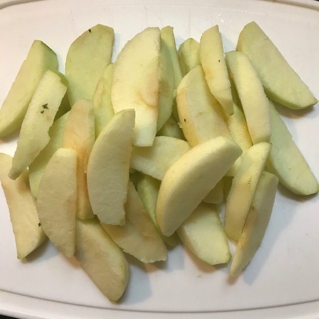 - Peel the skin off the apples, take out the core and slice them to a thin slice.