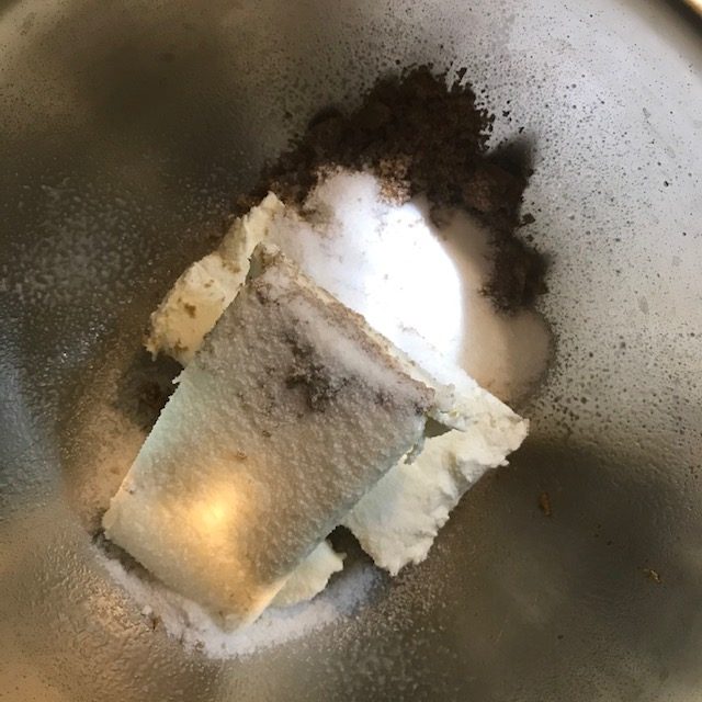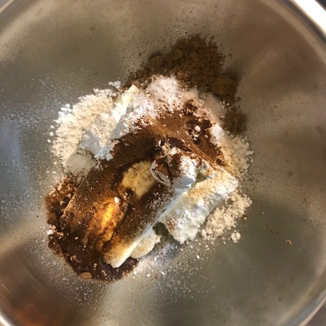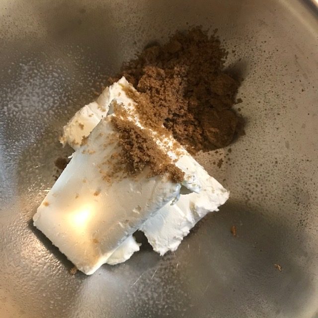 - In a bowl put in the Cream Cheese, Brown Sugar, Sugar, Cornstarch, Cinnamon, Ginger, & Vanilla Extract.
