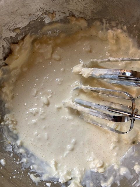 - Mix these with a hand mixer until you get a smooth and consistent mix.