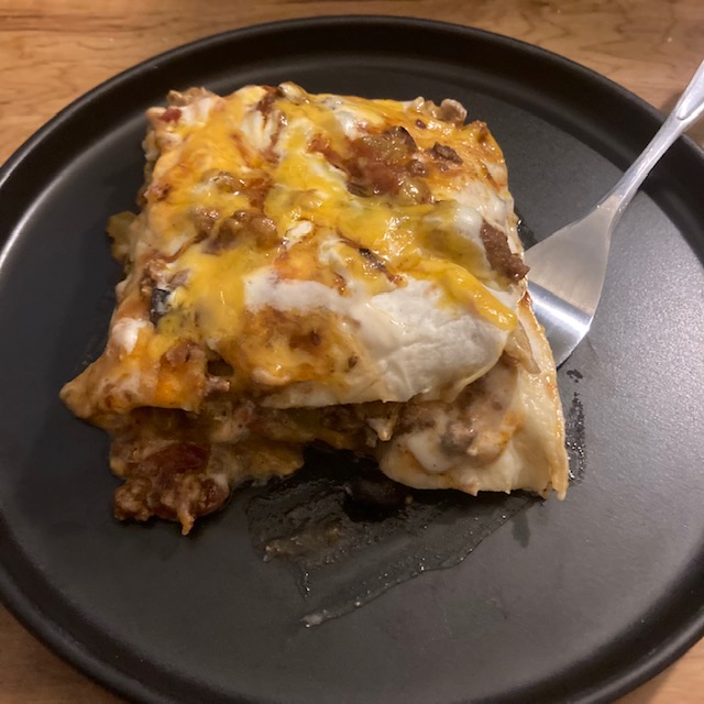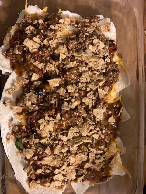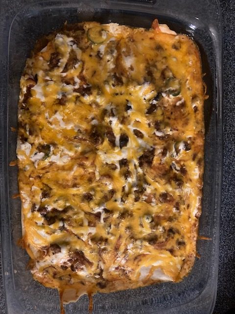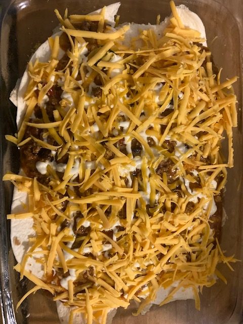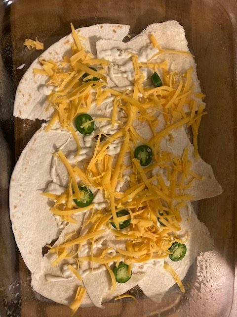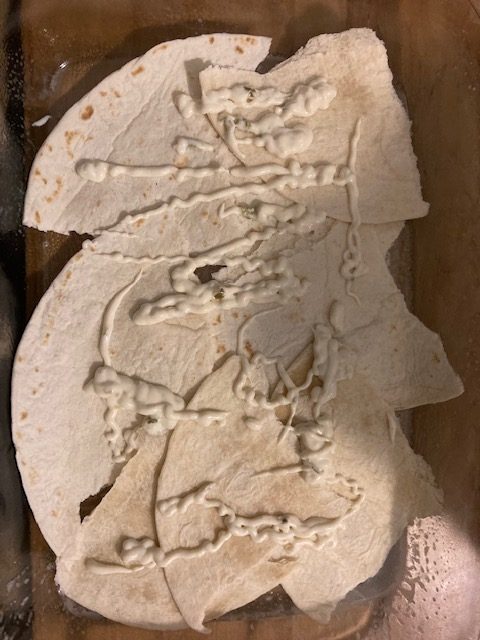 - The next layer starts with the Tortillas and repeats the process until you use up everything. Should be about 3 layers.