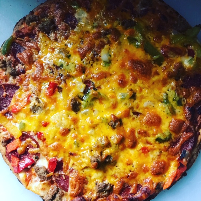 While warming up I’ll take the pizza out of the box and add around 4 to 6oz of additional cheese. Most of the time this is Mozzarella cheese, but sometimes in the case of the Supreme Pizza, I will add NY Sharp Cheddar…go ahead judge me for the cheddar, but if you give it a try you will understand! (Then you can leave a thank you comment below)