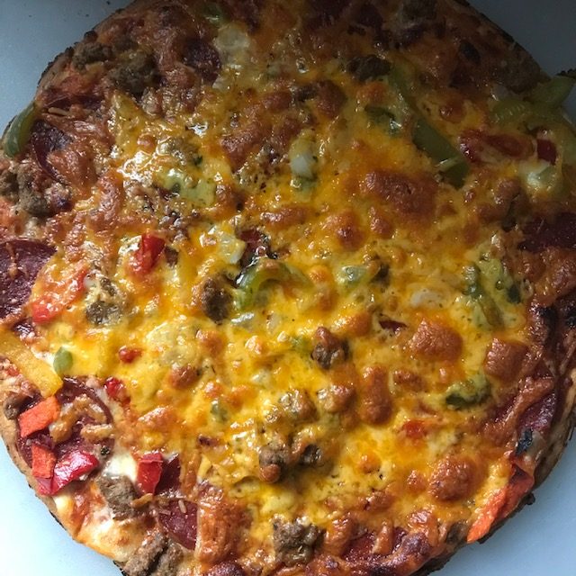 For Newman’s Own Pizza they say to cook them at 425 Degrees for 11 to 13 minutes. Now full disclosure I cook these on a stone pizza slab that was gifted to me by my favorite sister! I put this in the oven as it warms up to temperature. This brings the stone slab up to heat and helps to cook the crust. Now you can use a pizza pan, but you may not get the same crisp on the bottom of the pizza. Total up to you! Taste great both ways I’ve used both the stone and a pizza pan.