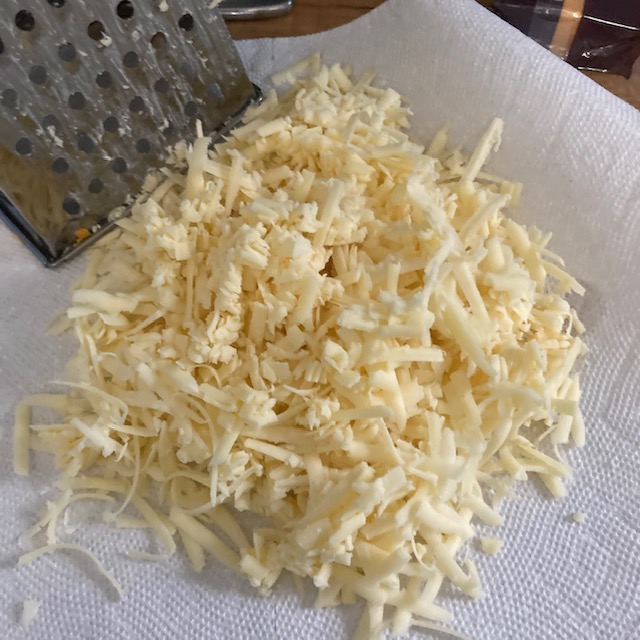 - Shred up all of your cheese.