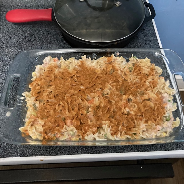 Frito Topped Tuna Casserole is a traditional casserole with a twist. Yeah instead of the traditional topping I go with the crushed Fritos instead of potato chips. I also go with a Cajun seasoning but feel free to go with a seasoning that you like. In addition to these options I used Cream of mushroom soup, but you can also use cream of chicken soup to give yourself another variety of Tuna Casserole. Frito Topped Tuna Casserole much like all of my recipes should just be a base that you can build off of. Give this one a go and if you make it your own then just let me know what you did in the comments, social media, or even just shoot me an email! I’d love to hear from you!
