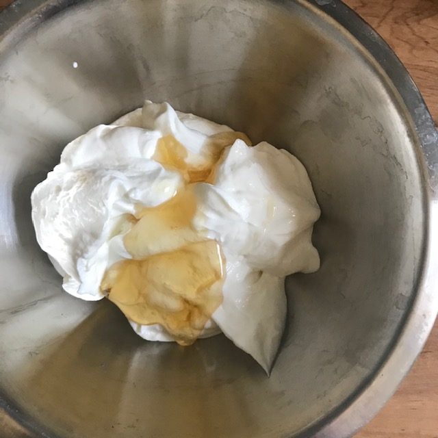 - Mix the Yogurt and Honey well. Taste test and add more sweetener if you desire.