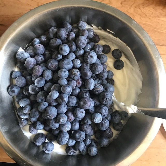 - Now add your blueberries and mix them well.