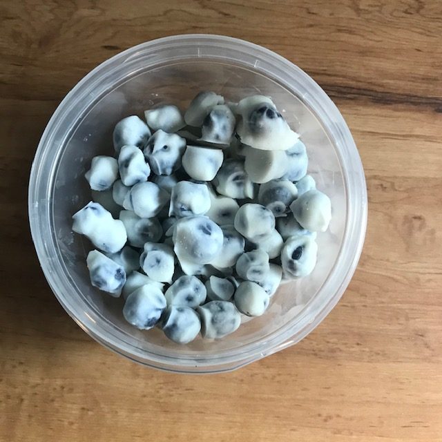 - Take the Yogurt Blueberries out of the freezer and put them in a container for storage.