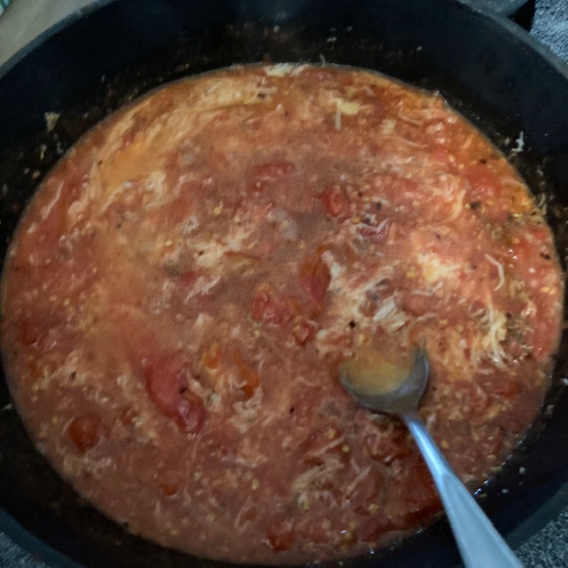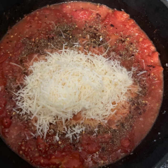 - Add in the parmesan cheese and let it melt into the tomatoes. Season with salt to taste.