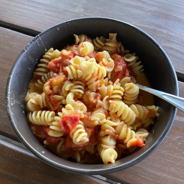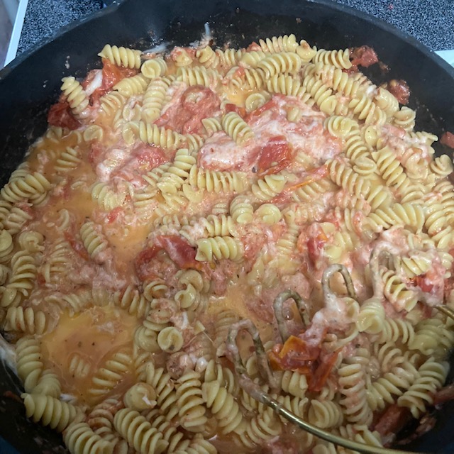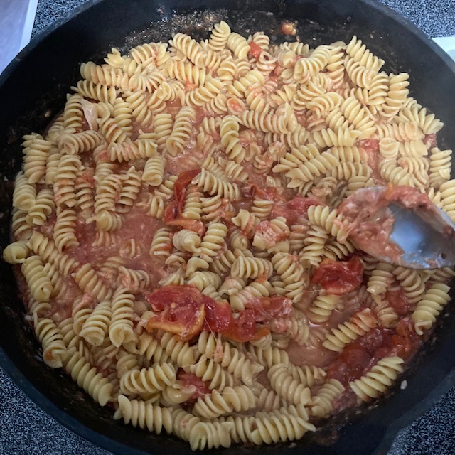 - Add in the Pasta once the Parmesan is melted into the tomato sauce.