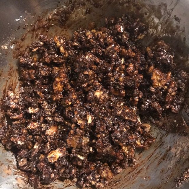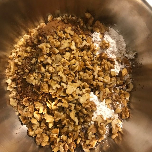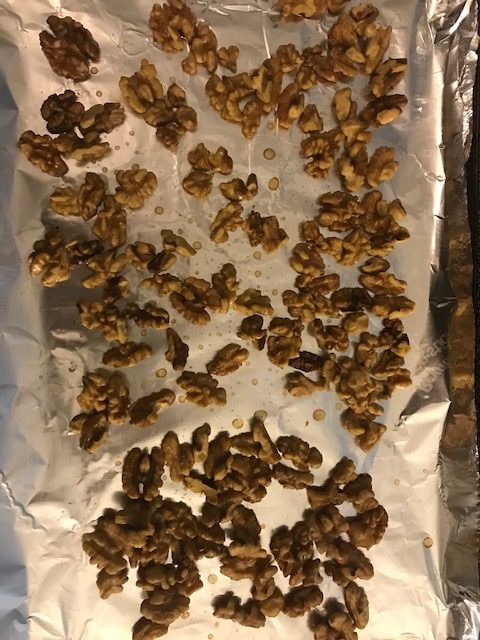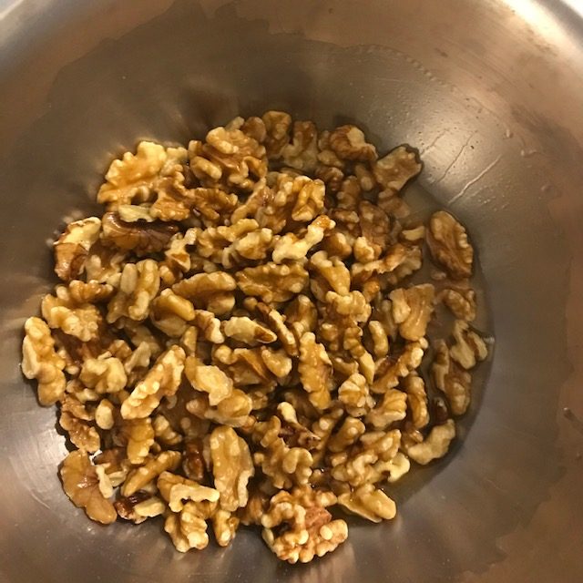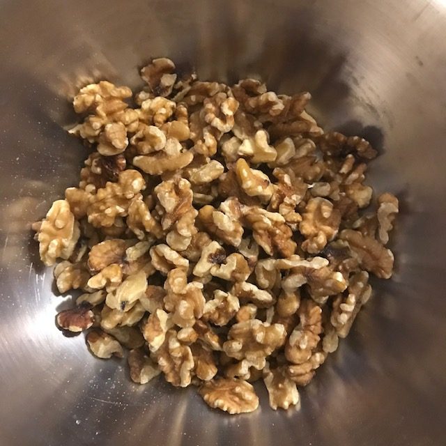 - Take the Walnuts out of the oven and add them to the large bowl.