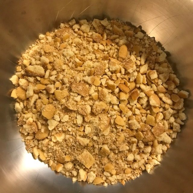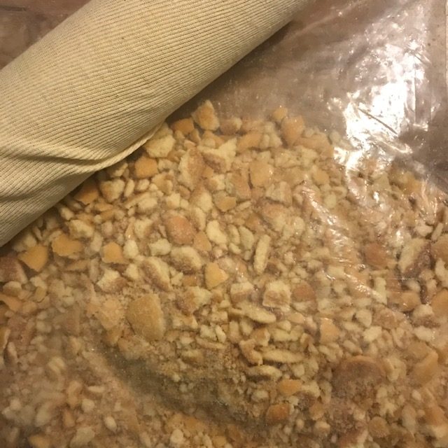 - While the walnuts are roasting put the mini Nilla wafers into a gallon plastic bag. Crush up the Nilla wafers.